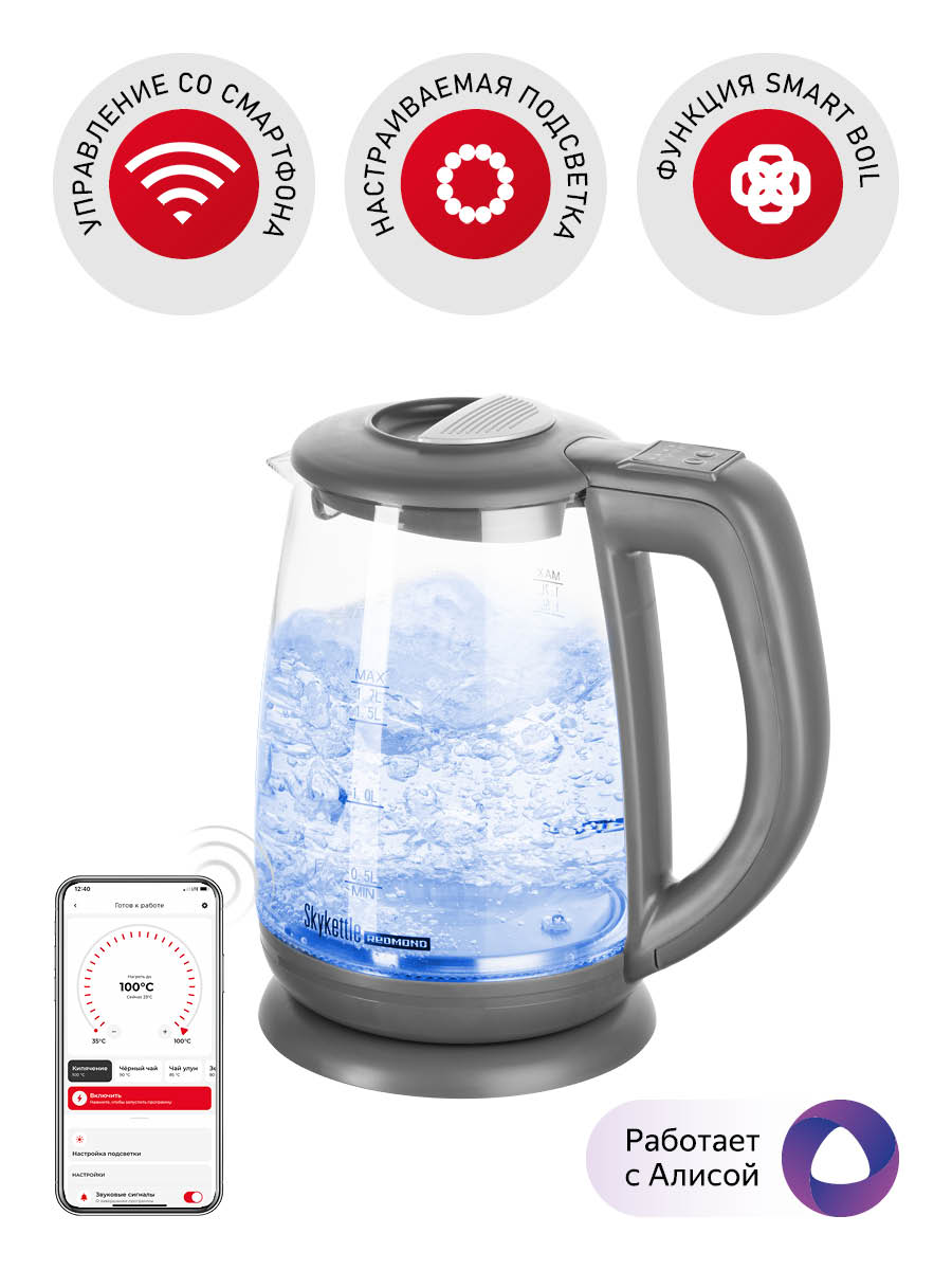 Чайник РЕДМОНД SkyKettle RK-G214S, Темно-серый
